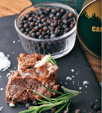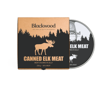 High quality canned elk meat in jelly. Meat is hand cut and sterilised. Naturally produced, contains 90% wild game.