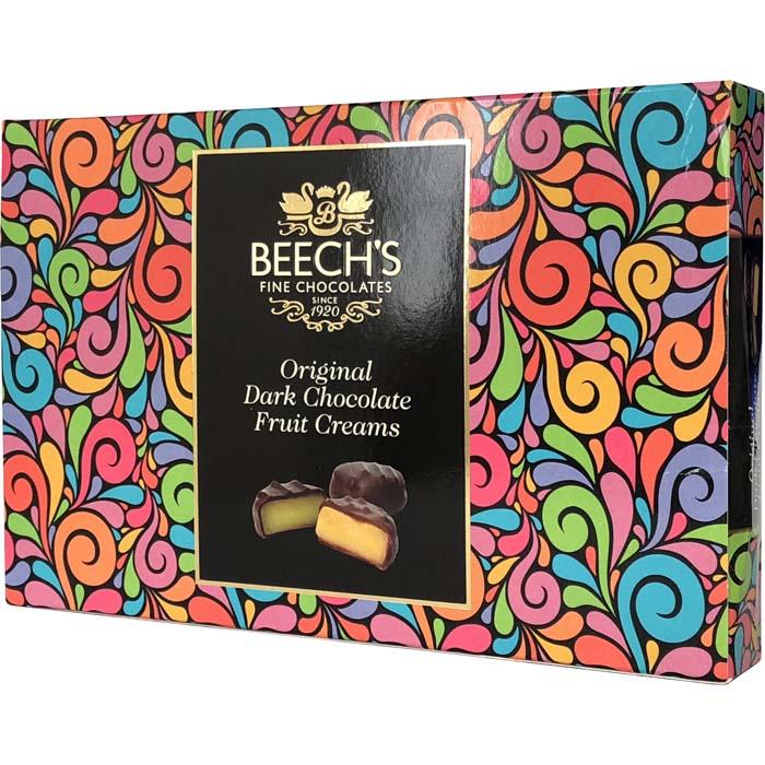 Our Fruit Creams are made to a traditional recipe using only natural flavours. This is a delightful selection of orange, lime, raspberry & lemon cream centres, smothered in rich dark chocolate. All Beech’s Dark Chococlate Creams are suitable for vegetarians and vegans