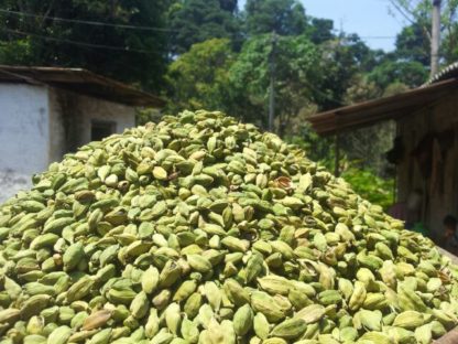 Cardamom of commerce is the dried ripe fruit (capsules of cardamom plant) often referred to as the “Queen of Spices” because of its very pleasant aroma and taste. Cardamom is a perennial, herbaceous, rhizomatous plant. Based on the nature of panicles, three varieties are recognized viz. Malabar with prostrate panicle, Mysore with erect panicle, and Vazhukka with semi-erect panicle. Plants are of medium size (2 to 3 mtr height) with pubescent leaves (on the dorsal side) and fruits globose in the case of Malabar, whereas plant robust (3 to 4 mtr height) with leaves glabrous on both sides with ovoid capsules in the case of Mysore. Vazhukka variety is a mix of both the above in physical characteristics