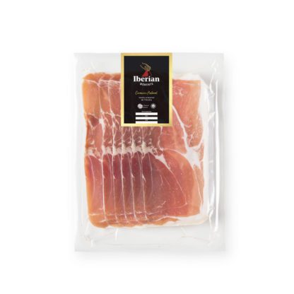 Sliced P.G.I Trevelez Ham cured more than 23 months in a natural environment. Product free of preservatives and colourants.