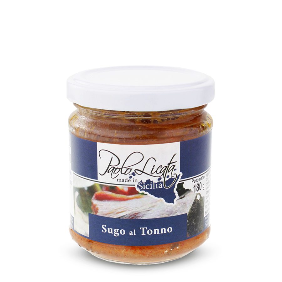 Ingredients: Tomato 70%, tuna 15%, sunflower oil, wine, onion, basil, garlic, salt, hot pepper, parsley.