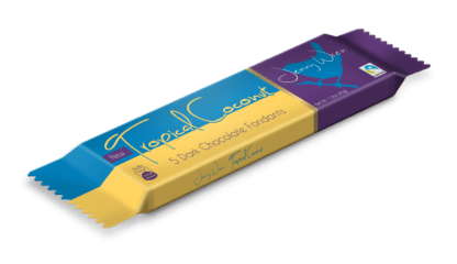 Dark chocolate with delicious Coconut Fondant centre. Wrapper is compostable, gluten free, vegan friendly.